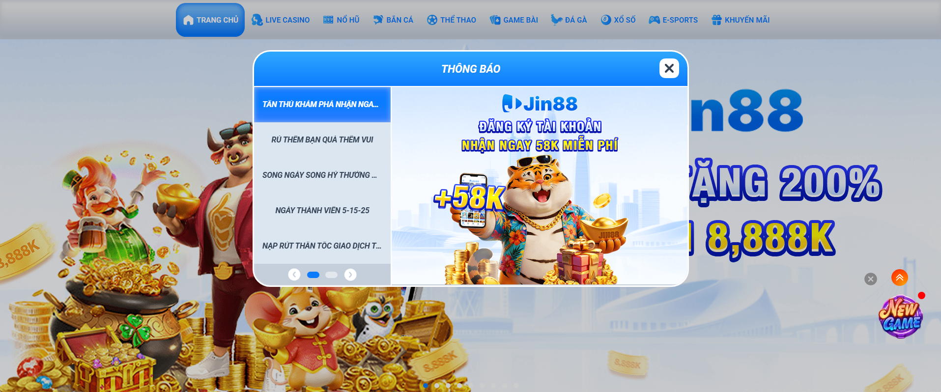 Không chỉ sở hữu kho trò chơi phong phú, Jin88Bet còn nổi bật với nhiều chương trình khuyến mãi hấp dẫn dành cho người chơi. Từ thưởng đăng ký, thưởng nạp lần đầu cho đến các chương trình hoàn trả hàng tuần 🎁, tất cả đều mang lại nhiều lợi ích cho hội viên.